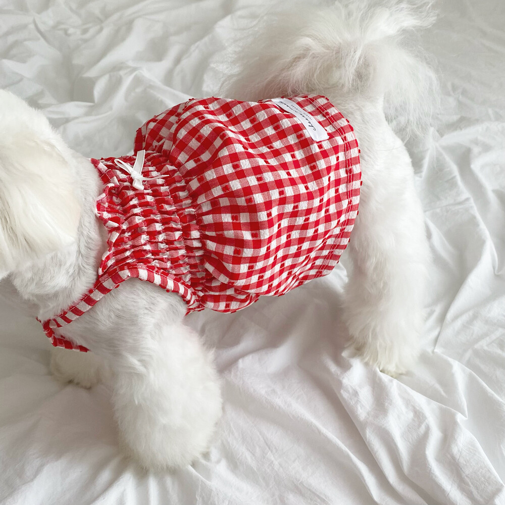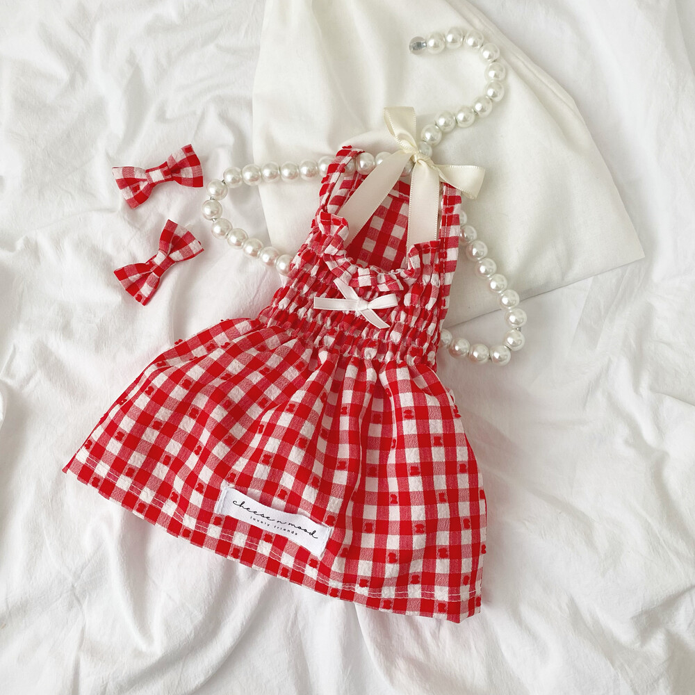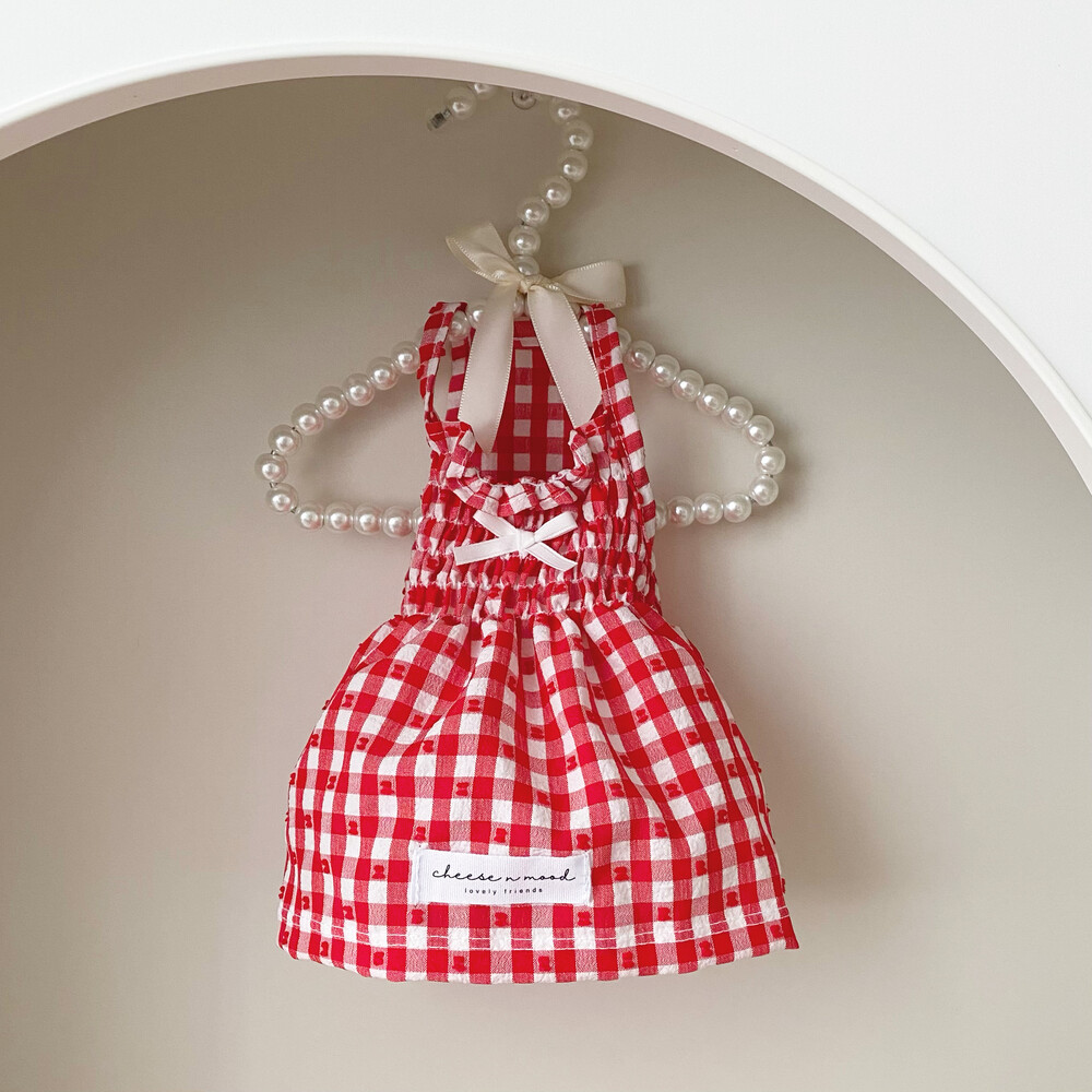 쁘띠체크 원피스 (레드)