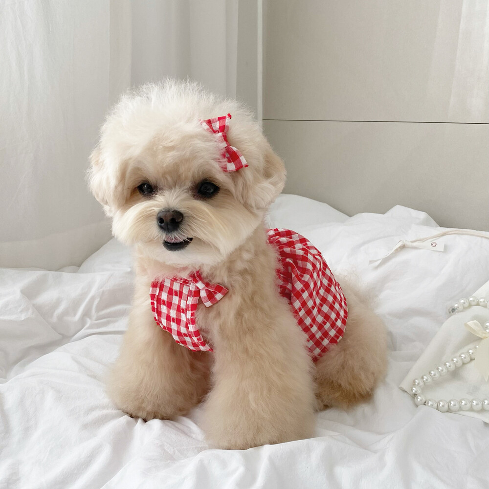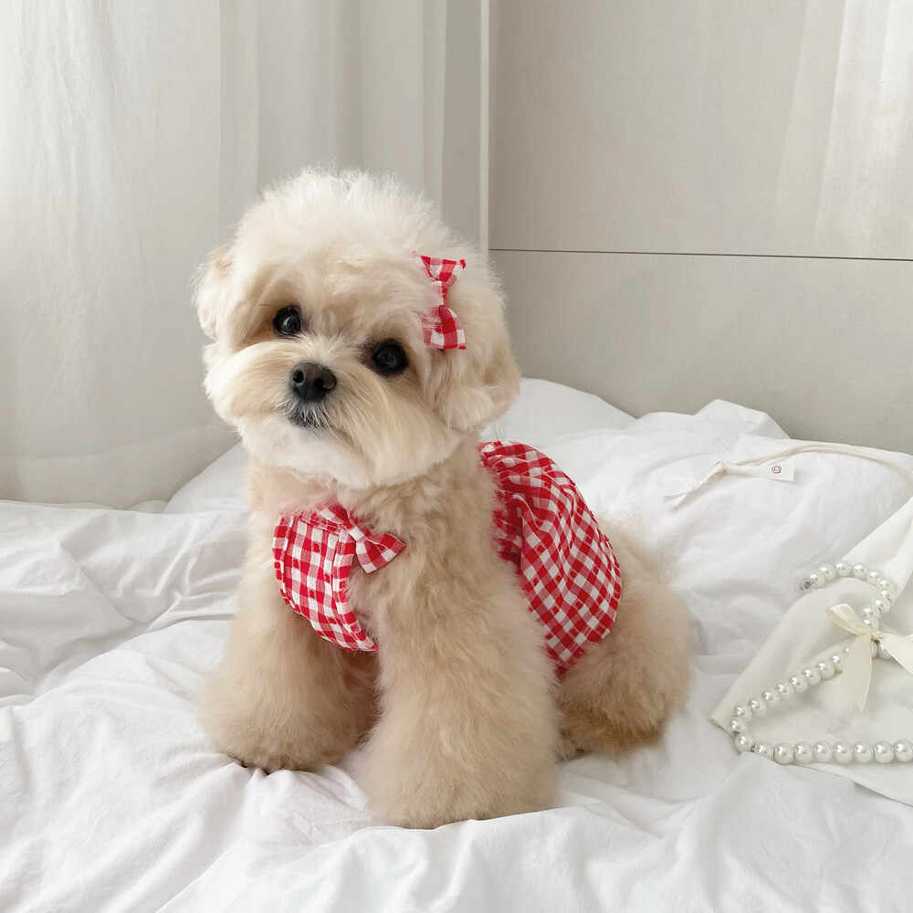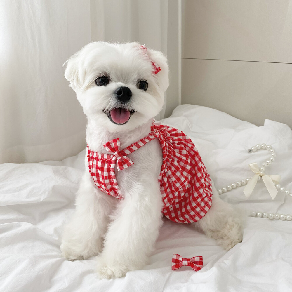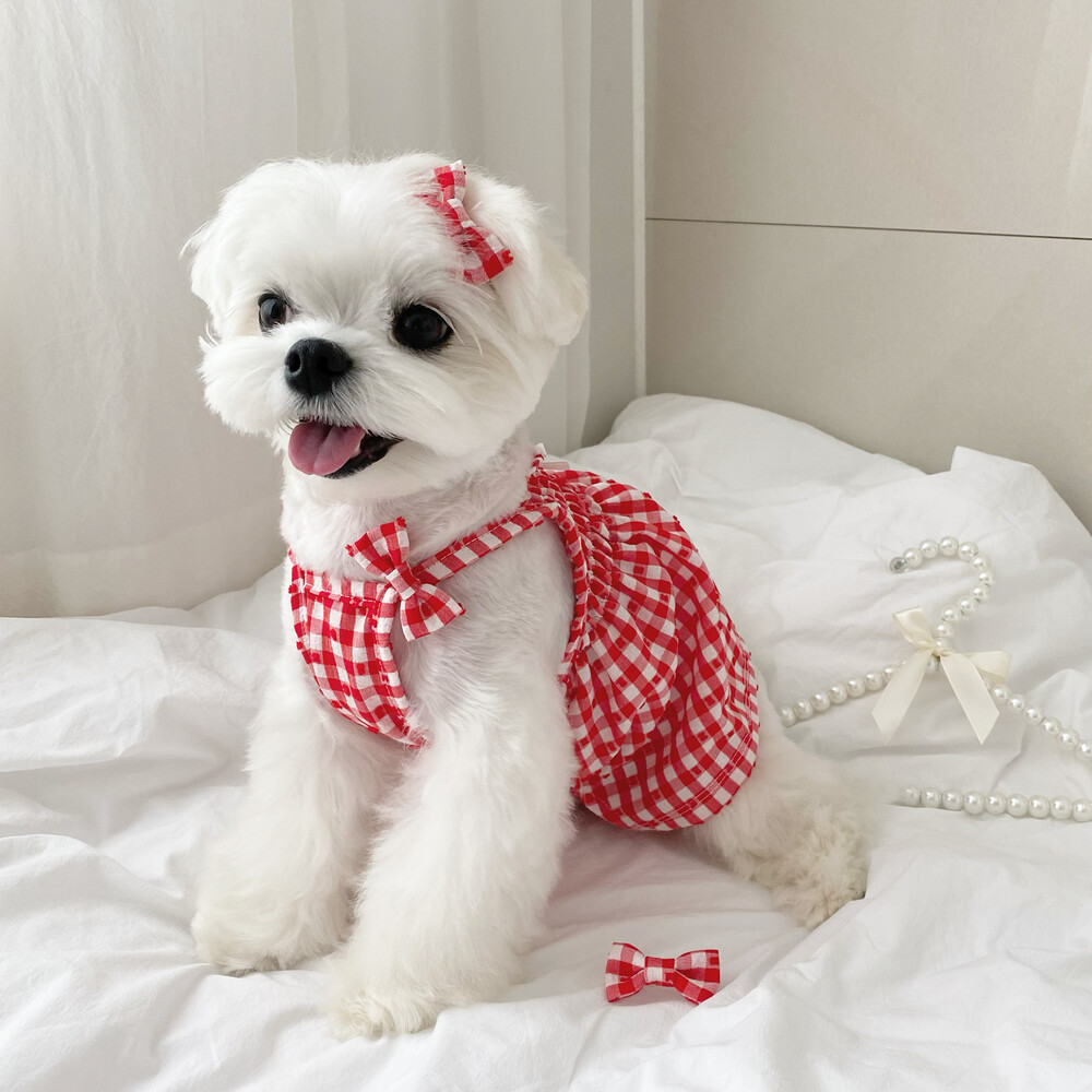 쁘띠체크 원피스 (레드)
