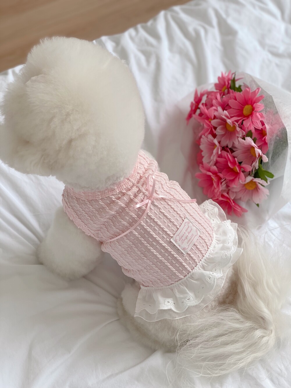 목이랑 등에 주름을 잡고 리본을 달아