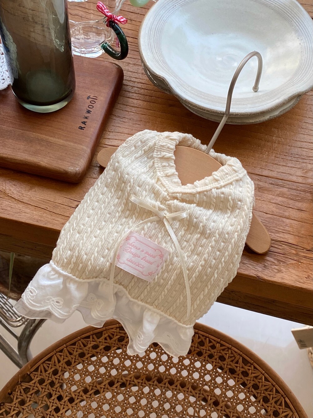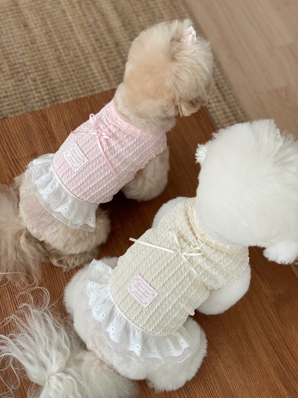 목이랑 등에 주름을 잡고 리본을 달아